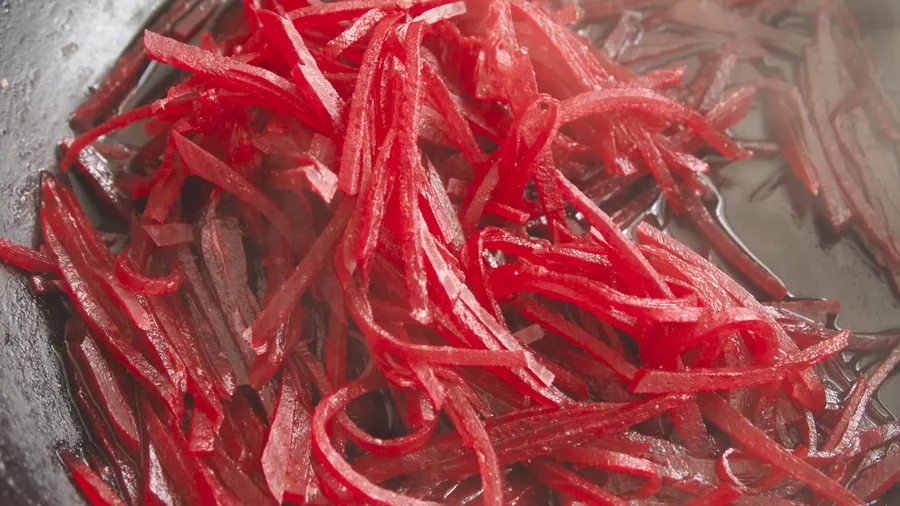 Peel and grate the beets with a spiralizer or a mandolin slicer.