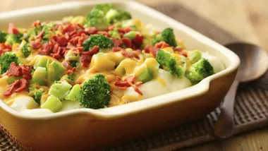 To microwave potatoes, pierce potatoes with fork. Microwave uncovered on High 7 to 9 minutes, turning potatoes over after 4 minutes, until tender. Let stand 5 minutes. Mash and fill potato shells as directed. Arrange stuffed potatoes in circle on 10-inch microwavable plate. Cover with waxed paper and microwave on High 2 to 3 minutes or until hot.