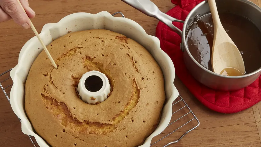 Prepare the rum syrup during the last 10 minutes of baking, before the cake is completely cooked.