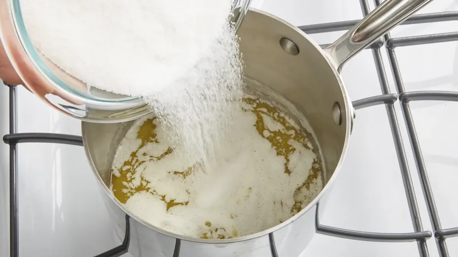 In a pot, melt the butter before adding the water and sugar. Let simmer for 4-5 minutes while stirring constantly. Turn off the heat (very important!) before pouring the rum into the mixture; this will prevent any accidents or burns! Stir in the mixture until the rum has blended into the syrup, then re-heat for 30 seconds to finish.