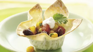 Add wonderful Island flavors to your meal. Tortilla chips topped with black bean dip, salsa mixture and sour cream gives you delicious appetizers.