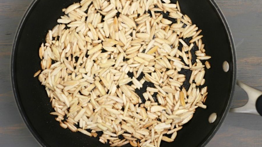 Brown the almonds in olive oil.