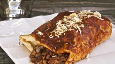 Serve a portion of meat with the sauce. Repeat until you have all 4 rolls ready. You can garnish with cilantro if you want.