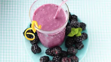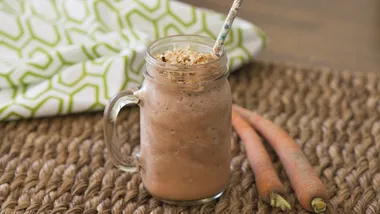 In blender, blend at high speed yogurt, orange juice, carrots, lemon juice and ice cubes, until well mixed.