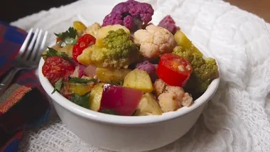 Remove the green stems in the cauliflower and separate into medium-sized florets.