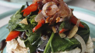 You can save time preparing this cauliflower rice with spinach by buying clean and chopped cauliflowers. You can find the bags in the salad aisle at the supermarket.