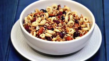 • Prep these tasty mutli-grain breakfast cereal balls at the beginning of the school week, it’s a quick and easy breakfast idea for your kids. Made with the winning combination of dried fruit, nuts, grains and Honey Nut Cheerios™, these little energy gems are easy to enjoy on-the-go and small enough to tuck in any lunchbox as a snack.