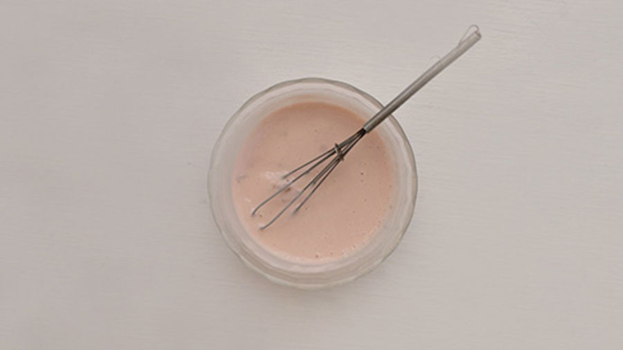 To prepare yogurt drizzle: In a small bowl add water and whisk gelatin until it dissolves. Set aside for 5 minutes or until mixture thickens into a paste.