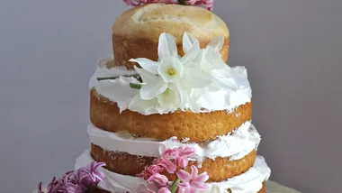 To serve, use a serrated knife to cut. Starting with the top layer, cut and serve the cake layer by layer.