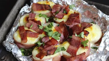 The recipes that use 5 ingredients or less are perfect because they're easy and we save time in the preparation. At home we love potatoes, they're versatile and can be used in many different dishes. If you have any leftover, you can use them in many delicious dishes like this cheese pie with potatoes and bacon. It's delicious and a complete meal. Enjoy!