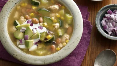 Salsa verde, combined with chicken, corn and beans, adds to a flavorful combo for tostadas.