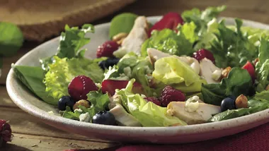 • This chicken salad made just for two is a fresh blend of chicken, fruit and a hint of mint for a juicy dinner.