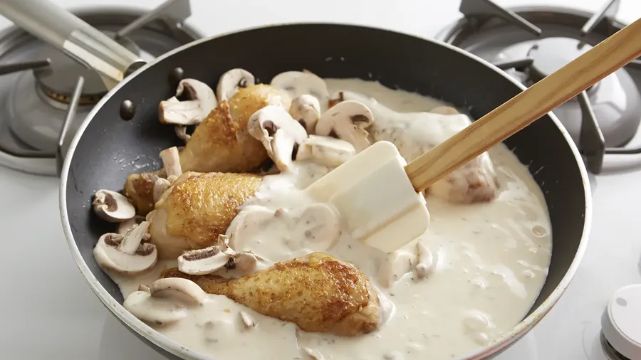 • Recipes like this are great for days when we don't have the time for a complicated dinner. In less than 30 minutes you can prepare a mouthwatering dinner of chicken covered in creamy mushroom sauce. The cilantro gives the dish a special touch with its aroma and familiar Latin flavor. I recommend serving this dish with white rice or potatoes to get the most out of the creamy sauce. Always have quick recipes at hand. They can help you save time while offering delicious meals.