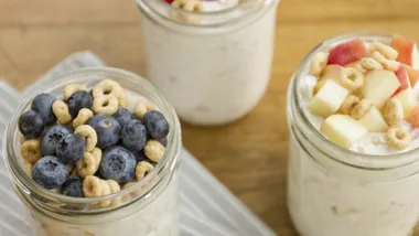 When ready to enjoy, heat in microwave for 30-60 seconds. Top with almonds, chocolate chips and Cinnamon Toast Crunch™.