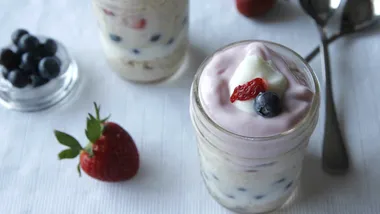 Lately I’ve been experimenting with various overnight oat recipes. I love this type of oatmeal because it is creamy and it only takes a few minutes to prepare in the evening. If you’re on the go in the mornings, prepare it in a jar or a container with a tightly sealed lid. All you have to do is add toppings and grab a spoon!