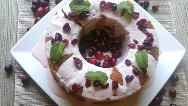Bake for 50 minutes or until a toothpick inserted comes out clean. Cool for 10 minutes, unmold in a serving plate with rimmed edge.