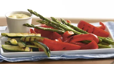 In small bowl, stir together dip ingredients. Cover; refrigerate at least 1 hour to blend flavors.