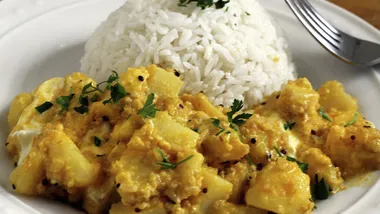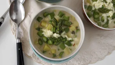 Add the potatoes and vegetable soup, cover and simmer for about 25 minutes.