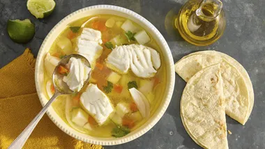 Mash it leaving a few pieces of potato. You can use an immersion blender in the pot or a food processor, pressing the button once or twice.