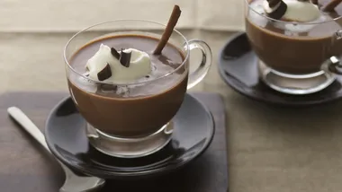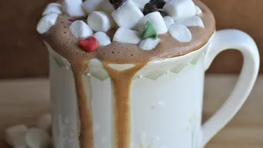 While the dough is cooling, prepare the hot chocolate. Place the milk and chocolate in a saucepan over medium-high heat. Make sure to continually stir and check the chocolate. The mixture will be ready when the entire bar has melted and the milk is very hot. Be careful to not let the milk boil, or it might spill over.