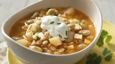 This Bolivian soup with choclo (fresh corn) is called lawa. The name alludes to its somewhat thick consistency which is, without a doubt, substantial. This version of lawa with tomato, fava beans and corn is very traditional and calls for traditional ingredients of South America. It's easy to prepare and comforting in the cold of winter. I recommend it.
