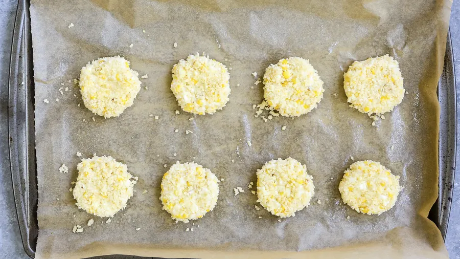 Using your hands, form the bites into disks. Cover with panko on all sides and place in a previously prepared tray. Spray with oil.