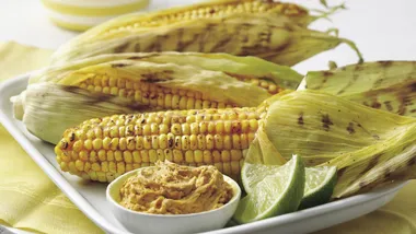Place ear of corn in center of each sheet of foil. Drizzle butter mixture evenly over corn. Fold foil over corn so edges meet. Seal edges, making tight 1/2-inch fold; fold again.