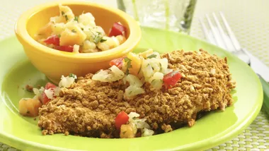 Cornmeal Chicken with Fresh Peach Salsa