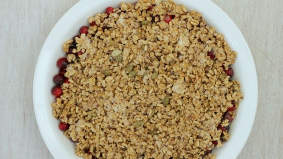 I want to share this incredible recipe for a cranberry crisp topped with granola. This is one of the easiest desserts that can be made in many different ways. You can replace the fruits with your favorite fruit or any fruit in season. If you don’t want to use cranberries, then your other options are strawberries, cherries, and peaches. Of course, the Nature Valley™ Granola should always be crunchy.
