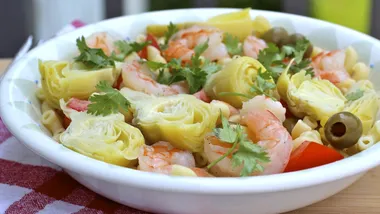 Garnish with parsley and an artichoke heart, or with shredded cheese.