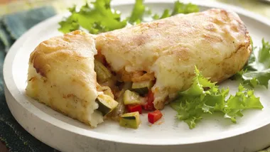 Cut the veggies down to the same size to facilitate even cooking. Use a vegetable chopper or mandolin slicer.
