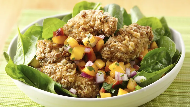 • Try this delicious main dish salad full of peachy flavor and crispy chicken!