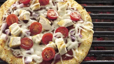 • Mouthwatering and moist, this grilled chicken gets flavor from bacon and two kinds of barbecue sauce, one tangy, the other creamy with a kick.
