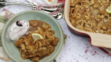 Heat oven to 350°F. Spread apples over bottom of 9-inch glass pie plate. Microwave uncovered on High 4 to 6 minutes or until apples are crisp-tender.