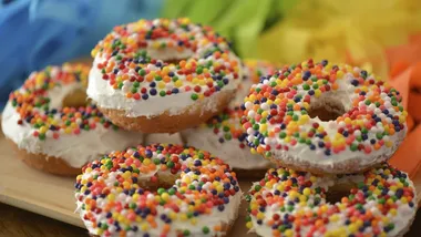 Swap Out: Use any cake mix to make these donuts. Dip them in white chocolate and decorate them with chopped nuts, toasted coconut or dried fruit.