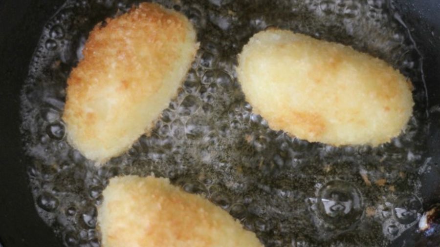 Fry the croquettes in hot oil and place them on absorbent paper once they’re golden.
