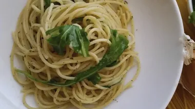 • Pesto has been my daughter's favorite dish since she was a little girl. I would make it quite often and with many variations so she wouldn't get tired, although honestly, her favorite was the classic pesto made with basil. One of my favorite flavors is the taste of arugula, easy to find during spring, and perfect for making a delicious pesto. This time I made it with walnuts but I've also prepared it with pecans, pistachios, pine nuts, sunflower seeds, and cashews. Each of these nuts or seeds add a different and unique taste, unlike any other kind of pesto you can buy at the store. Since this is a raw sauce, I recommend the use of high quality ingredients. Fresh garlic, a good olive oil, freshly grated cheese, and fresh tender herbs. You probably know that pesto can be added to many more dishes. I love to add it to freshly cooked rice. I also like to add it to cherry tomatoes for a nice little snack or on toast in place of butter. A spoonful goes great with minestrone or tomato soup. And it can also be a great way to season steaks or fish. When I have a good amount of herbs that I don't want to go to waste, I make a large batch of pesto and I freeze it in ice cube trays. This way I can use it as I go and I can save time in the kitchen. I add the garlic and cheese right when I'm about to use it. The arugula leaves should be completely dry before making the pesto otherwise the sauce can turn out runny. What are you waiting for? Get cooking! The world of pesto is here to surprise you, and this arugula version will wow you with its delicious flavor.