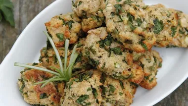 In saucepan over medium heat, stir-fry the fish in 1 teaspoon butter and 2 tablespoons olive oil. Add the chopped onion and parsley. Remove from the stove and let cool. Once cool, shred the fish meat.