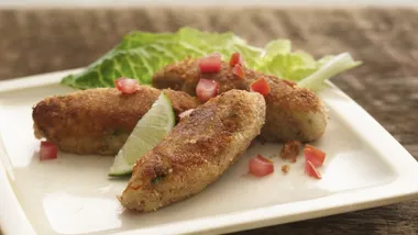 These croquettes can be accompanied with tartar sauce, lemon juice, salads, rice and vegetables.