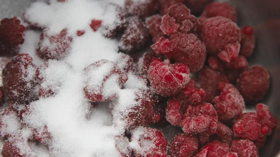 While stirring, mix until the raspberries melt completely and the sugar dissolves.