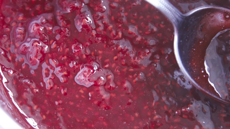 Turn off the heat and let it cool down for five minutes. Strain the mixture to get rid of the raspberry seeds.