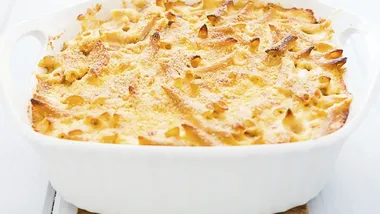 Four delicate-flavored cheeses, melted and bubbly, surround tender pieces of pasta topped off with crisp golden bread crumbs, creating a dish that will turn any meal into a special occasion--and it fits within the budget, too! Panko bread crumbs are Japanese-style bread crumbs that have a coarser texture and make for a much lighter and crunchier casserole topping. Regular dry bread crumbs will also work, but you may want to use half the amount. The four cheeses in this recipe complement each other, but you can easily use any combination of shredded cheese that you prefer. And check the pantry for other tubular pastas that can be used for the penne.