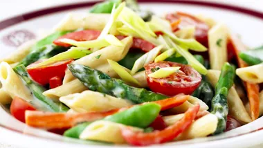 • 2 1/2 cups uncooked penne pasta (8 ounces)