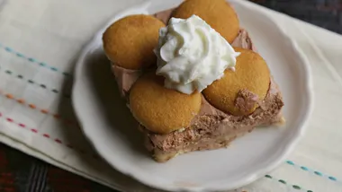 In small bowl, beat vanilla pudding mix and 1 cup of the milk with wire whisk about 2 minutes or until thickened. Stir in bananas. In another small bowl, beat chocolate pudding mix and remaining 1 cup milk with wire whisk about 2 minutes or until thickened.