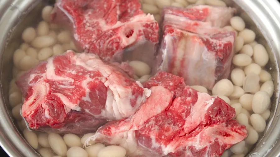 Put the meat in a pot, cover with water, bring to a boil over high heat for 1 hour.
