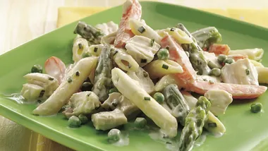 Combine the pasta with the vegetables. Stir in cheese and sprinkle with chopped parsley.