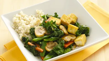 • 1 bunch (8 oz) fresh kale, ribs removed, leaves thinly sliced (6 cups)