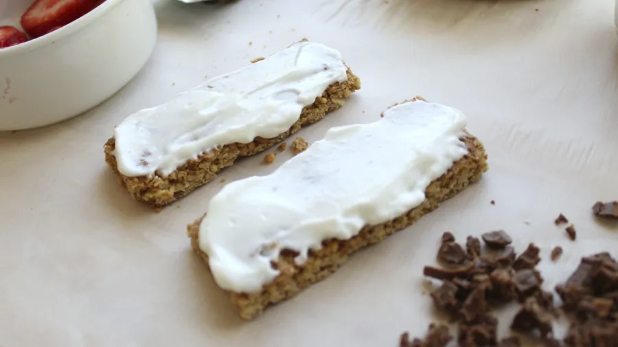 Spread 2 teaspoons of yogurt evenly on each Nature Valley™ granola bar.