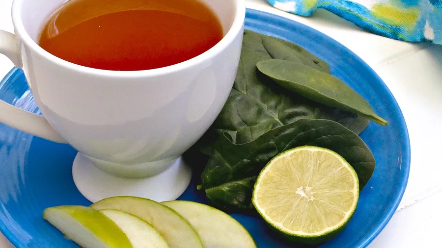 Blend the green tea with the spinach, apple, Greek yogurt, the juice of 1 lemon and honey for 60 to 90 seconds until the mixture is smooth and creamy.