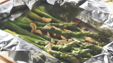 If you'd rather cook out, heat gas or charcoal grill. Place asparagus and green onions on grill over medium heat. Follow grilling times in steps 2 and 3.